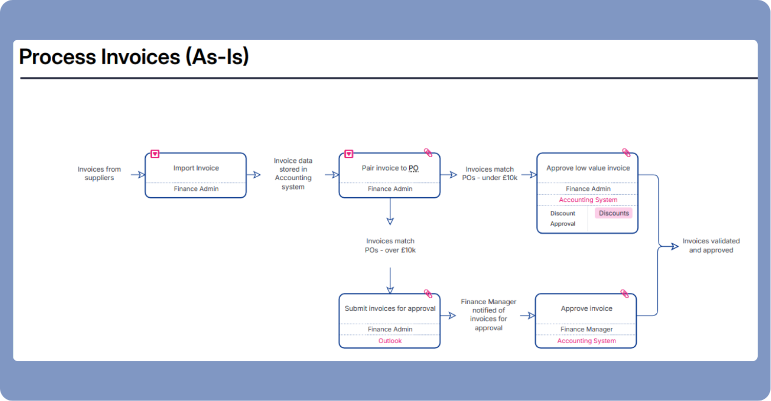 The problem grows as each project produces its own artefacts and moves on. The result is that no single person - and no single tool - holds a complete, connected picture of how the organisation operates. When a project starts, the first question is always the same expensive, repeated, one: “How do we do what we do?”